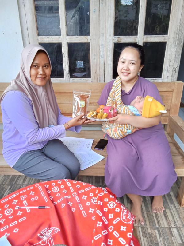 Untuk memastikan program berjalan efektif dan tepat sasaran, para kader desa secara kompak mendistribusikan PMT langsung ke rumah-rumah penerima manfaat.
